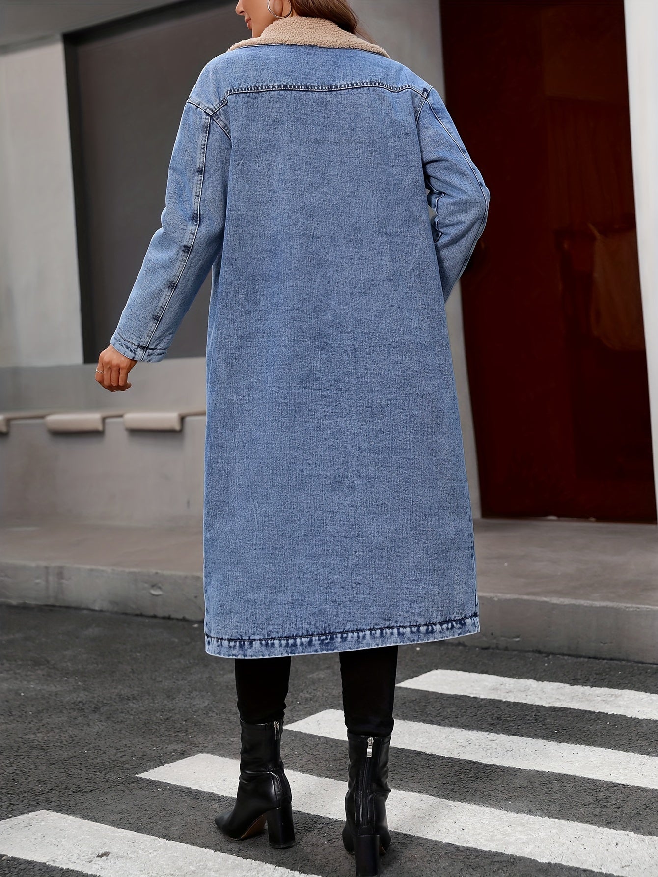 Women's Denim Jacket | Long Stylish Comfortable Warm Lined Trendy Blue