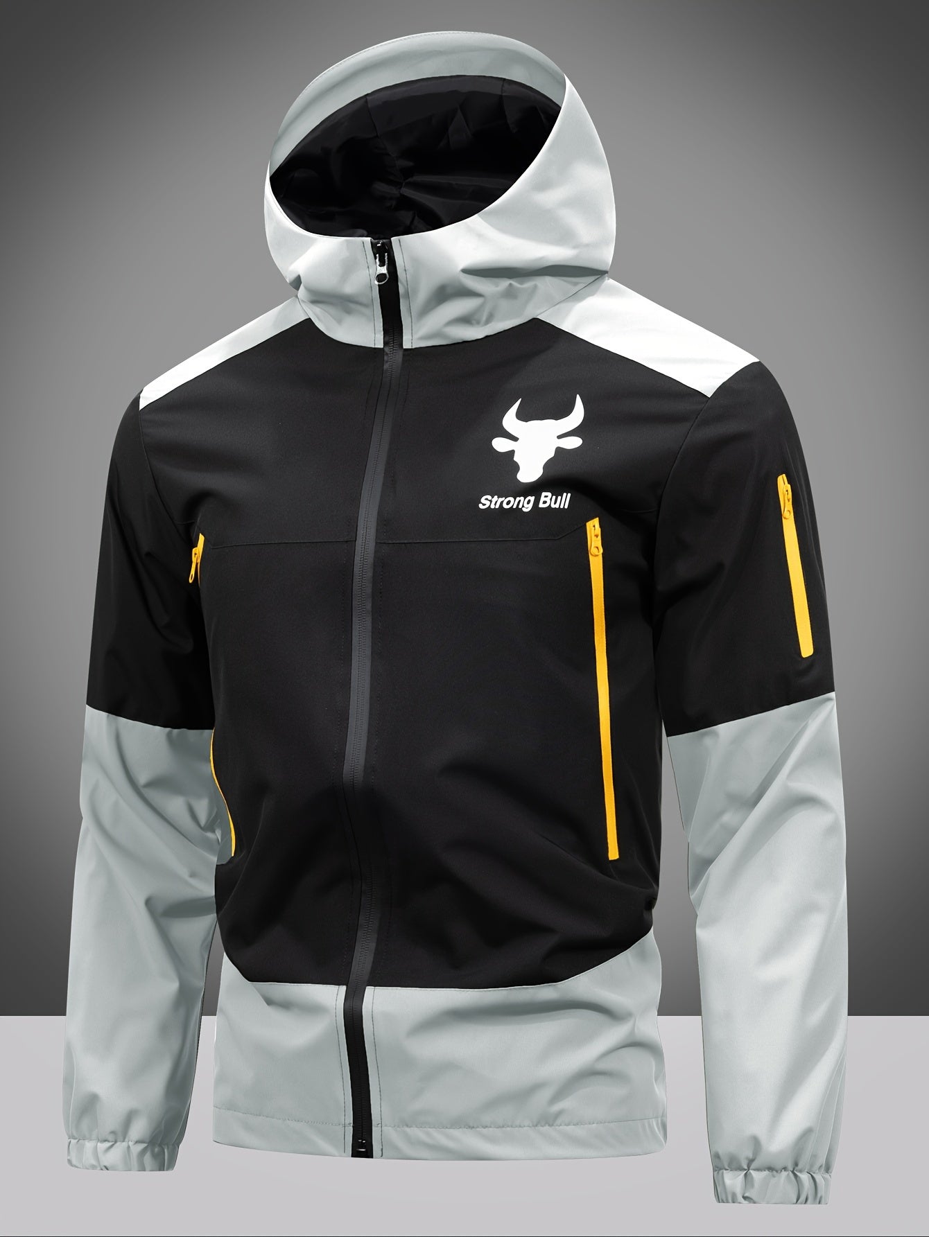 Men's Jacket with Zip, Hood, and Colour Block Design – Milan