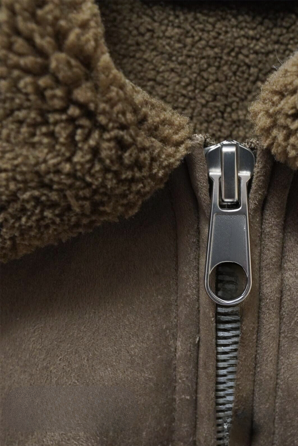 - Design: Minimalist with a soft collar and ribbed cuffs