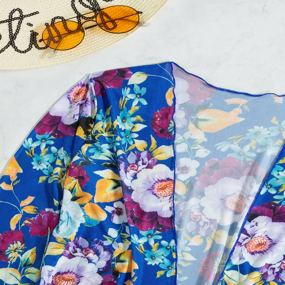Blue Bikini Set | 3-Piece | Floral Print | Flattering | V-Neck