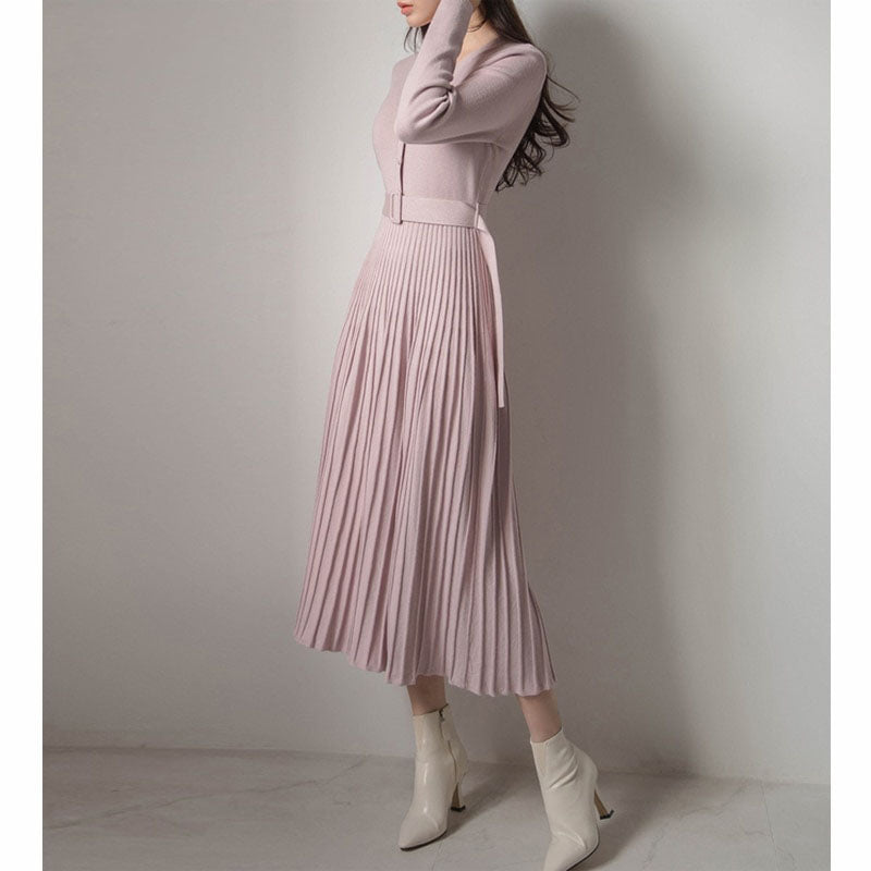 Elegant V-Neck Dress with Belt for Women