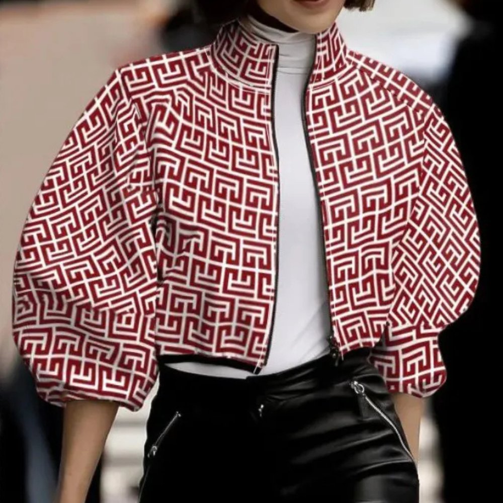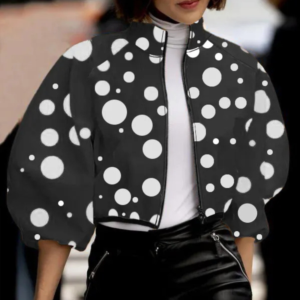 Short Ladies' Jacket | Dots | Puff Sleeves | Zip | Collar | Long Sleeves – State of Style