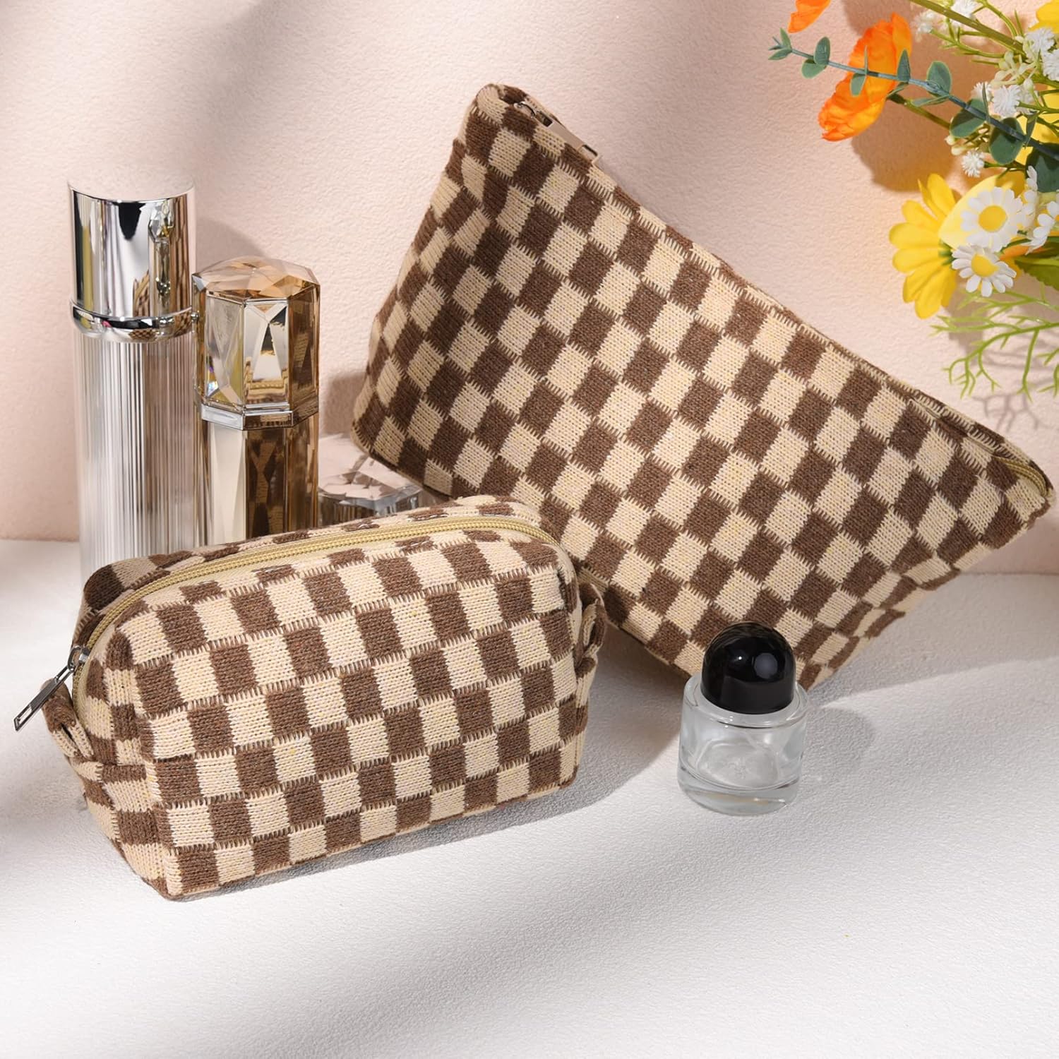 Upgrade your beauty routine with this 2-piece checkered make-up bag set, designed to keep all your essentials organised in style. Whether you are at home or on the go, these stylish bags offer ample space for your cosmetics, brushes, and toiletries. The high-capacity canvas ensures durability while remaining lightweight. Perfect for travel or everyday use, this set is both practical and fashionable. Don't wait too long—stock is running low!