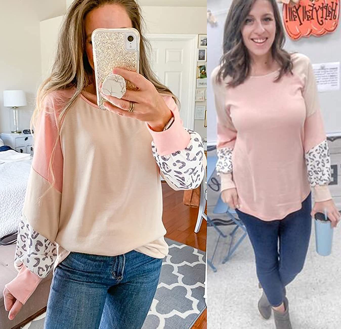 Naggoo – Colour Block Leopard Print Crew Neck Sweatshirt
