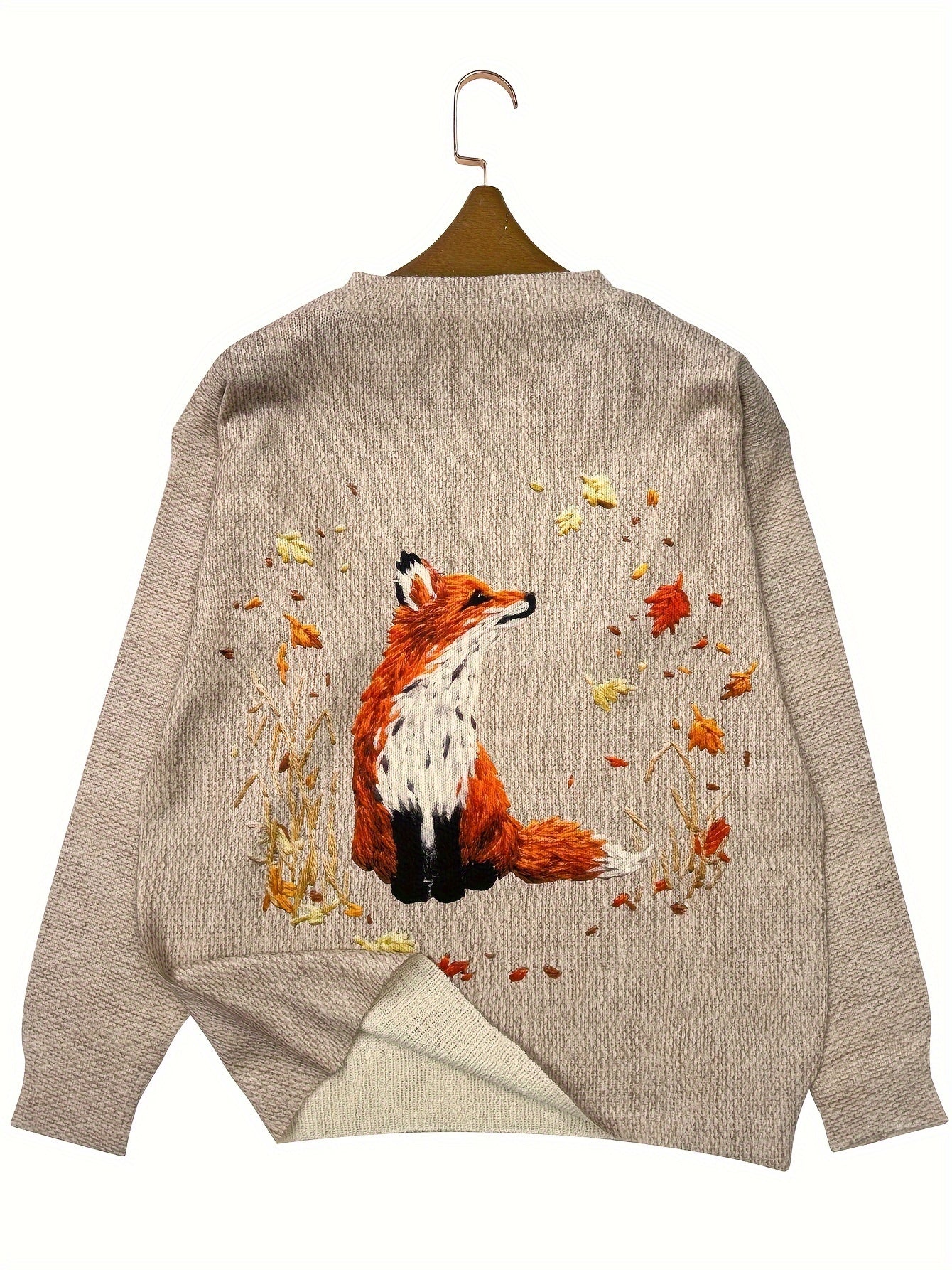 Trendy Sweater with Fox Print - Elisanne-S-State of Style