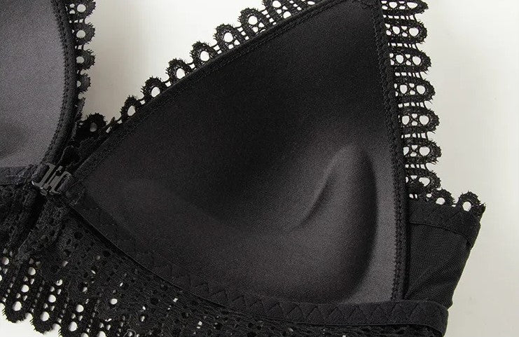 Designed for maximum comfort, this lingerie piece features a front clasp for effortless wear and adjustment, eliminating the hassle of traditional back closures. The lace detailing adds a touch of romance, creating a chic and sensual aesthetic.