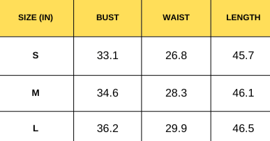 Size | Bust (cm) | Waist (cm) | Hip (cm) |