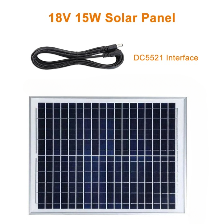 - 15W Solar Panel: Dimensions: 35 cm × 35 cm