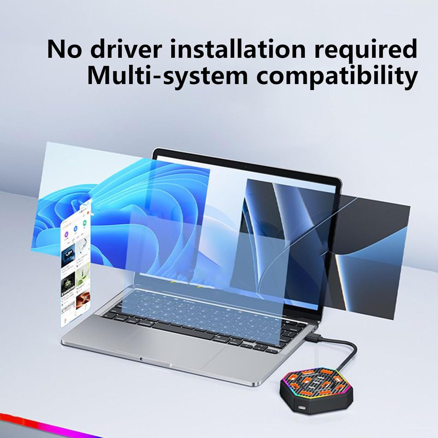 This 13-port docking station combines performance with design, delivering 10 USB ports and 3 Type-C connections for centralised device management. Perfect for laptops, it reduces cable clutter while supporting multiple peripherals such as HDDs, keyboards, and input tools. The 7-colour gradient RGB lighting provides a modern, ambient atmosphere, improving both focus and aesthetics. Built with smart overload and surge protection, it ensures safety and longevity for connected electronics. Compact and durable, it’s ideal for professionals, students, and home offices, creating a seamless and adaptable workstation environment.