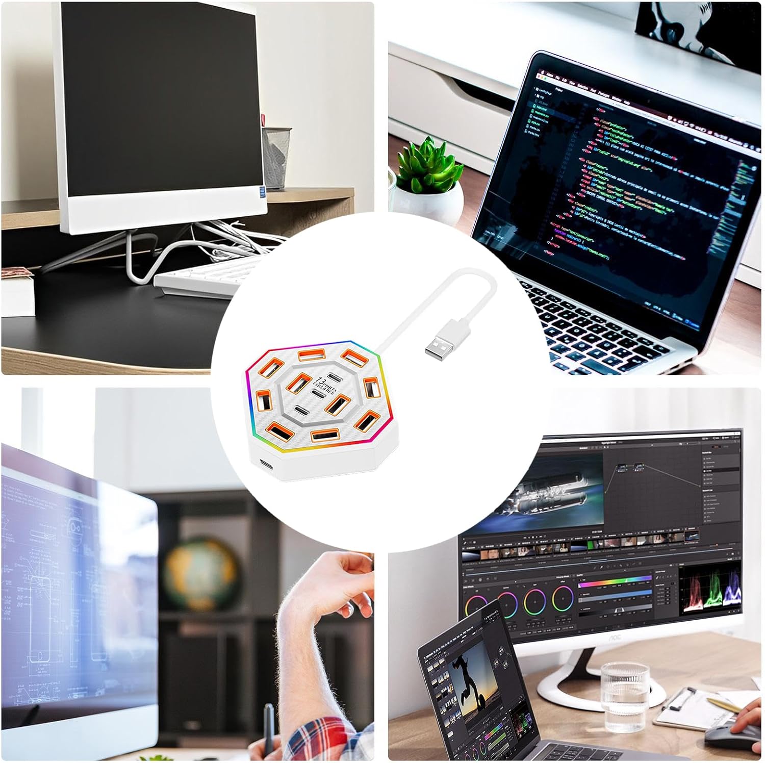 - 13 ports: 10 USB + 3 Type-C for complete connectivity