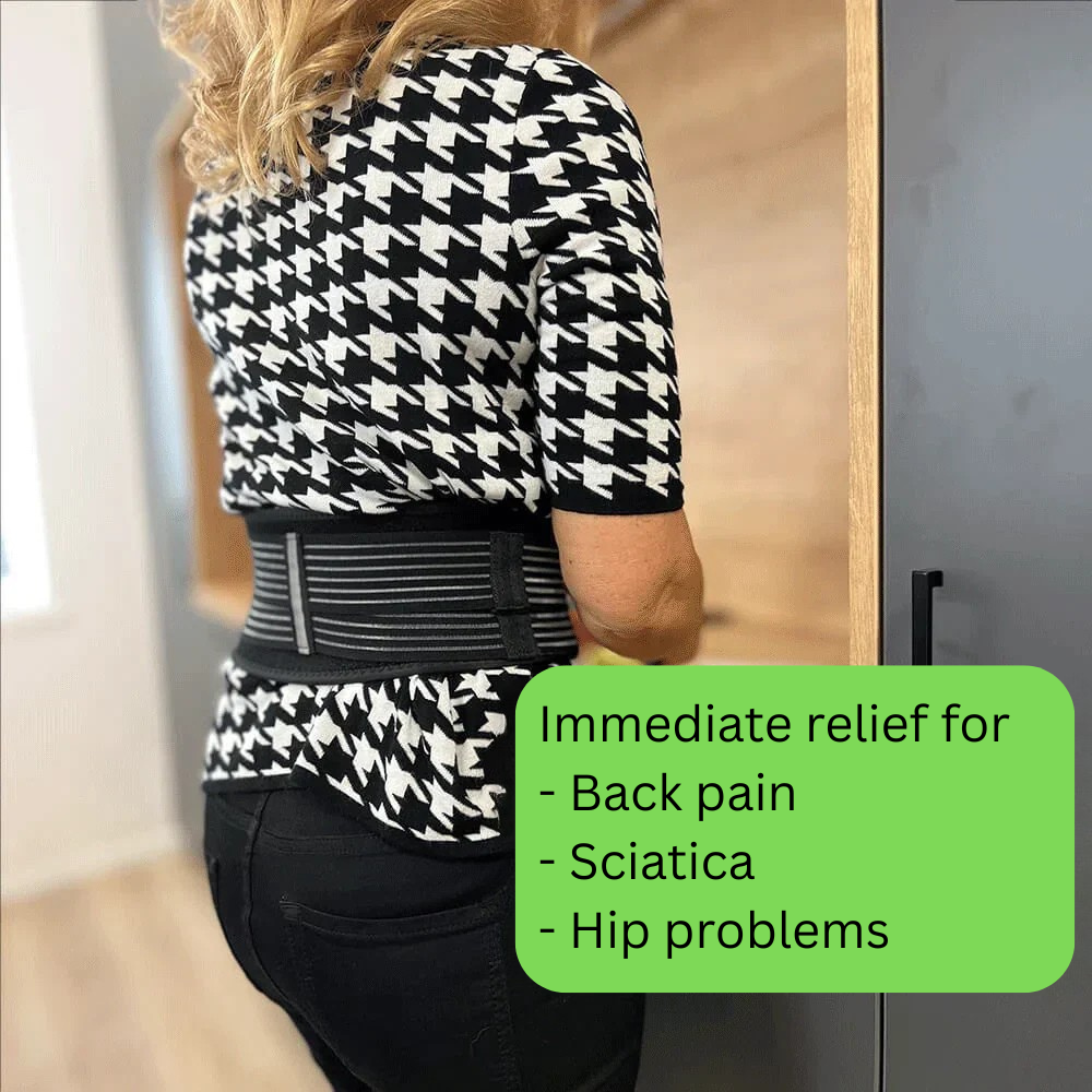 Our TripleSupport Back and Support Belt provides effective relief and support for back complaints, such as lower back pain or sciatica. Thanks to its unique triple-band system, this belt helps you correct your posture, reduce tension and stabilise the spine. Ideal for everyday use, whether standing, sitting or moving, without discomfort or irritation.