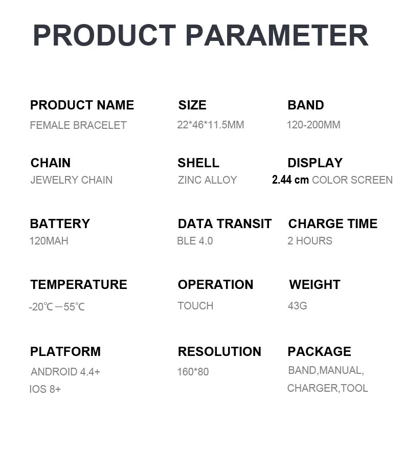 Combine fashion and functionality with our FitStyle fitness band, specially designed for women who want to monitor their health in style. With extensive health features such as heart rate, blood pressure, and oxygen monitoring, sleep analysis, and smartphone connectivity, this band is your perfect companion. Thanks to its stylish design and IP67 water resistance, you can wear the band with pride, both during daily activities and while exercising.