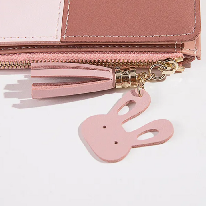Upgrade your accessories collection with this compact bi-fold wallet for women, designed to combine style and functionality. Featuring an elegant quilted pattern and an adorable bunny charm, this purse adds a touch of charm to your everyday essentials. The tassel zipper closure keeps your belongings secure while giving your wallet a trendy and playful look.