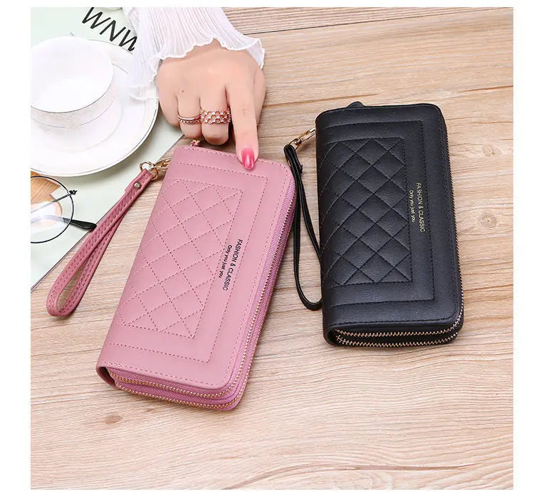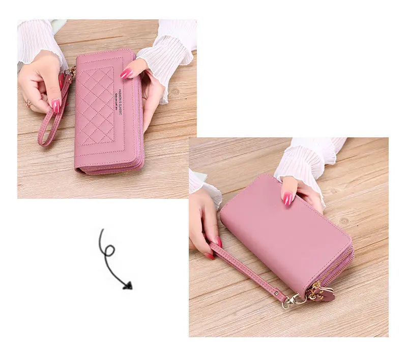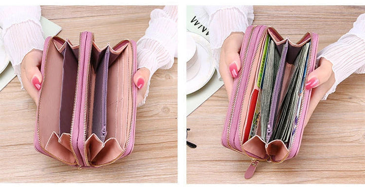 This stylish long wallet is more than just a cardholder; it's a luxurious all-in-one accessory. Designed with dual zippers, it features secure compartments for cash, coins, cards, and even your phone. Made from premium PU leather, this clutch exudes elegance and refinement, making it an essential companion for women on the go.