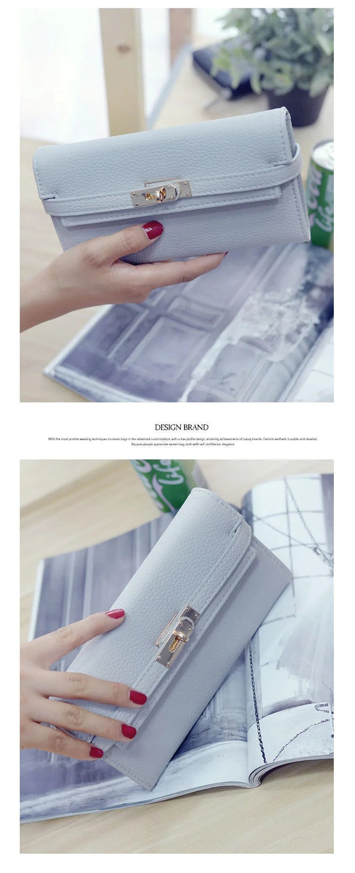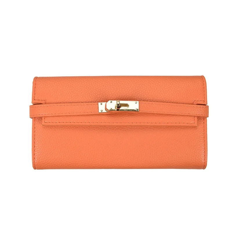 Upgrade your style with our Lychee Luxe Lock Women's Wallet, featuring a sophisticated lychee-textured design and a secure clasp closure!