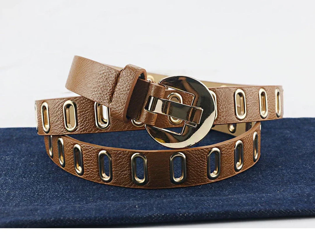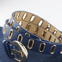Elevate your bold style with this adjustable Grunge-Punk belt, featuring a stylish gold buckle and multiple holes for the perfect fit. Made from high-quality PU leather, it not only adds a cool edge to your outfits but also ensures durability. Whether you're rocking your favourite jeans or grunge-inspired clothing, this belt effortlessly complements your look.