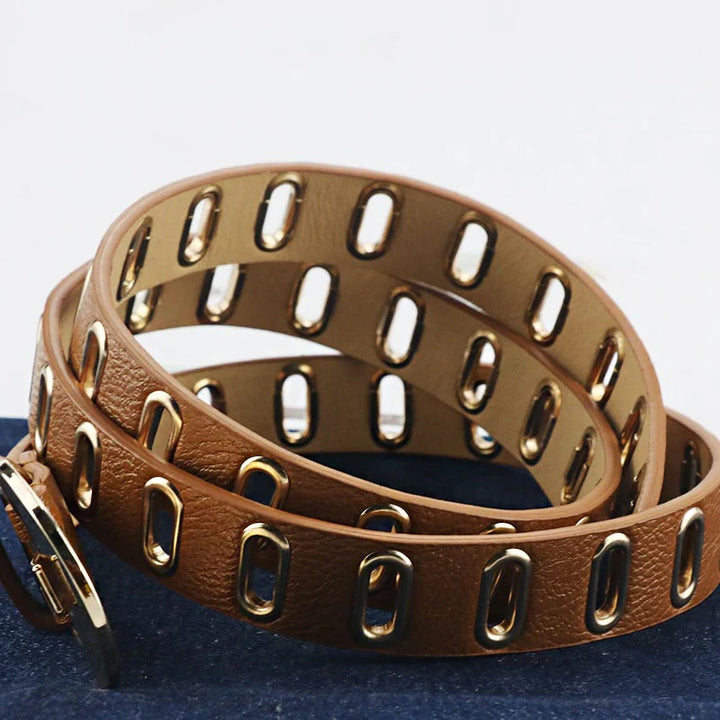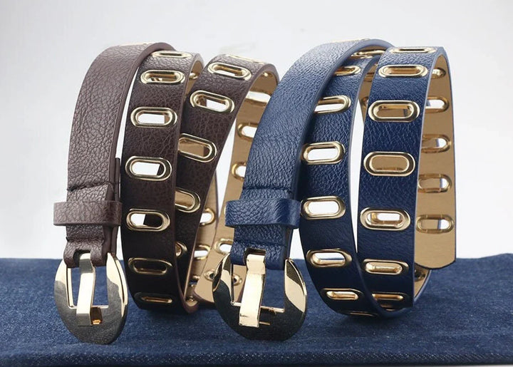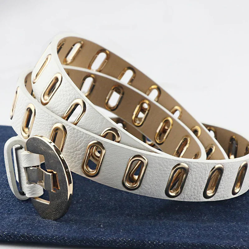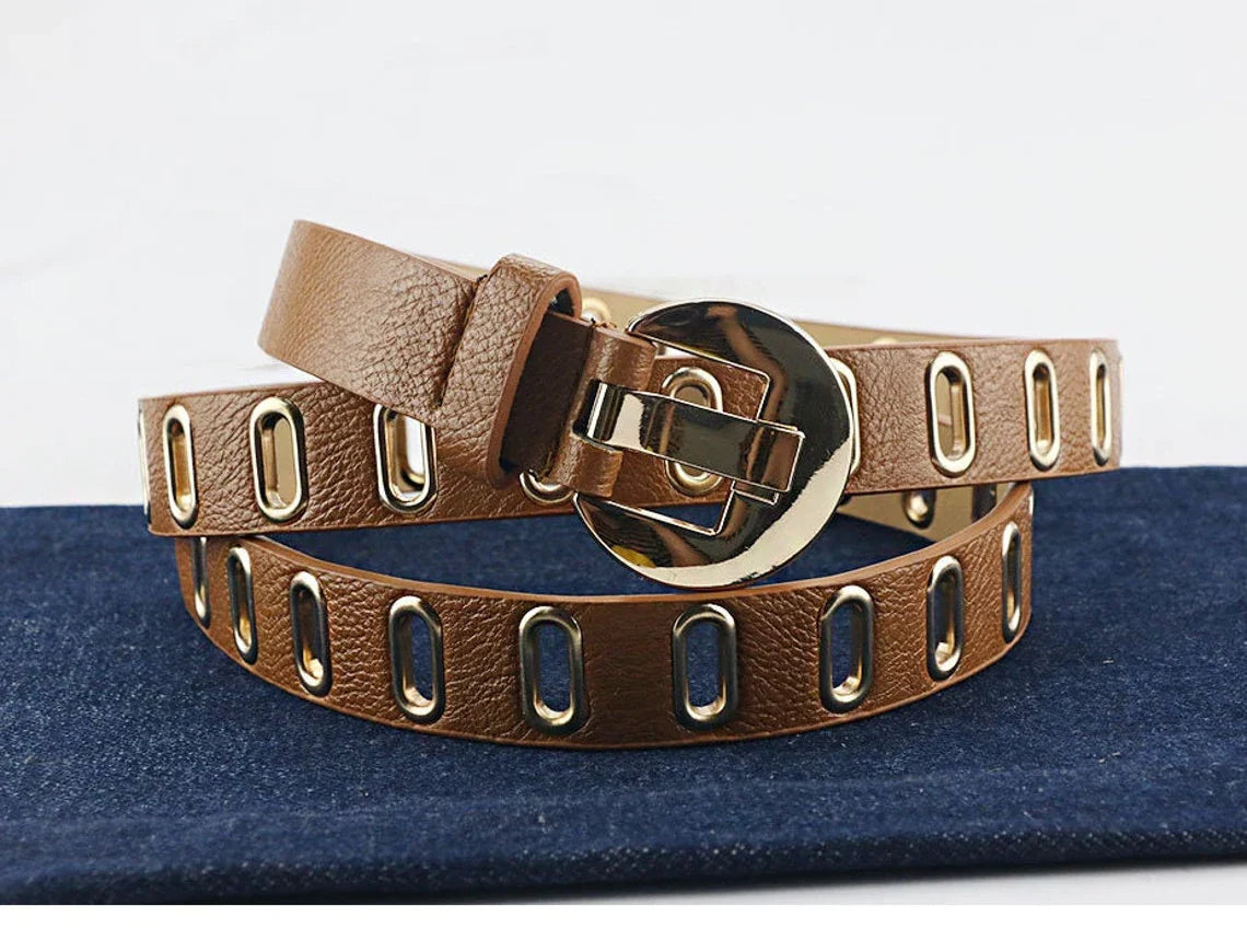 ✅ Sophisticated & Stylish: Designed with a trendy gold buckle and multiple holes for a customised fit. Crafted from premium PU leather, it enhances your outfits with a cool touch while ensuring long-lasting wear. Whether paired with jeans or a grunge-inspired outfit, this belt is the perfect finishing touch.