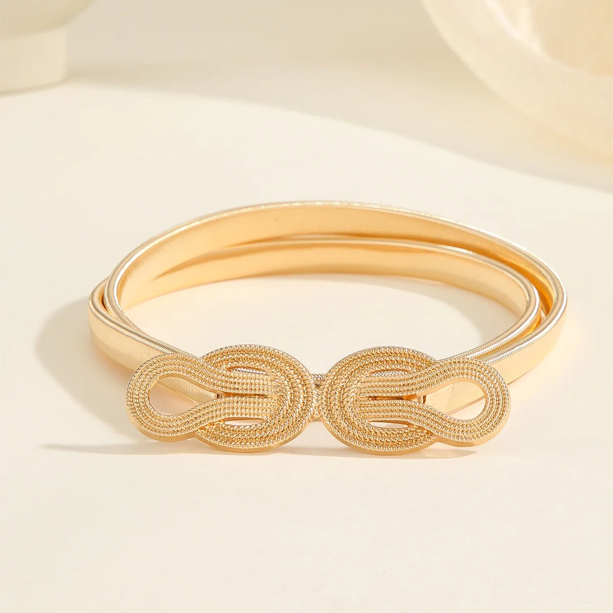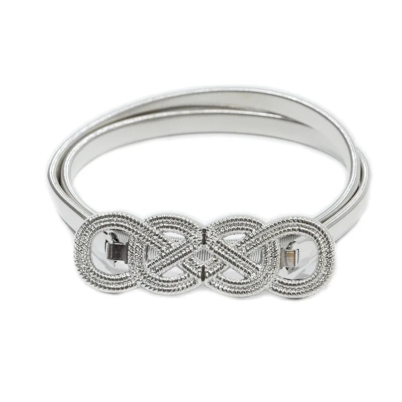 Introducing the latest must-have in women's accessories – the metallic elastic belt with a cloud-inspired double buckle. This luxurious and trendy addition adds a touch of elegance to your outfit. Its unique design ensures your ensemble stands out with fashionable flair.
