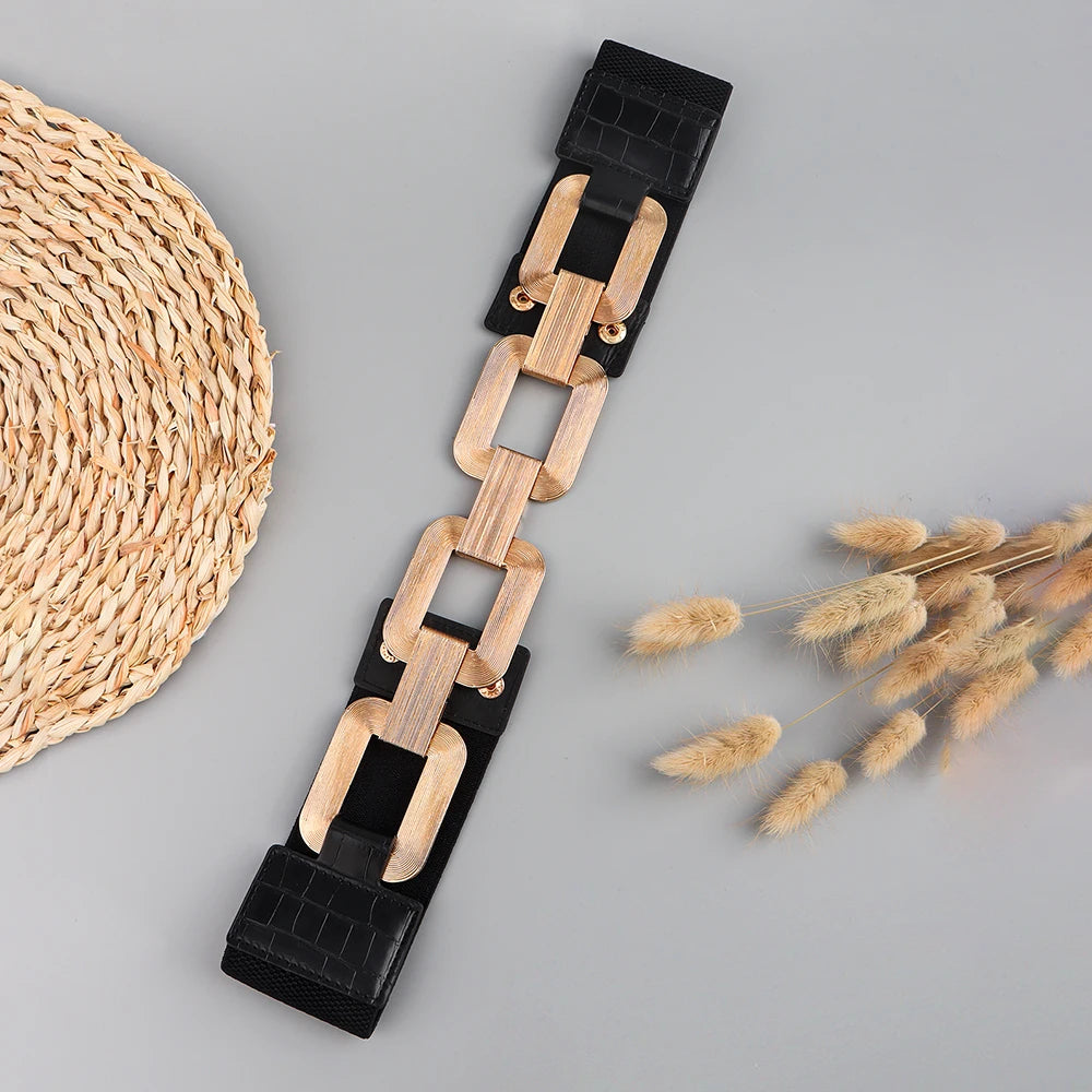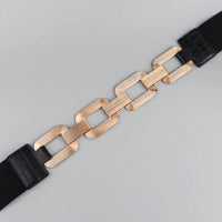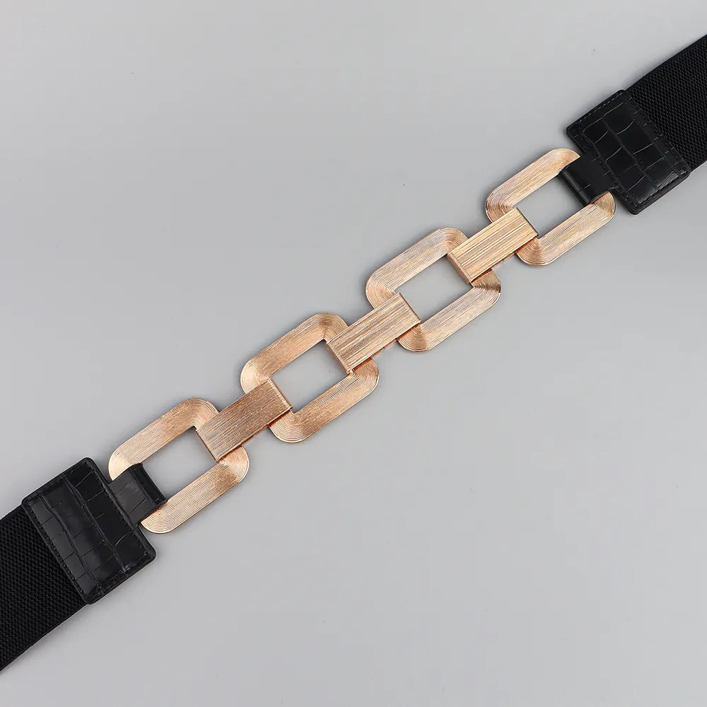 Introducing our fashionable elastic waistband with a metal chain for women – a must-have accessory for any style-conscious woman. This refined cummerbund belt adds a touch of elegance to your dress, coat, or any other outfit. With stylish metal chain details, it’s the perfect accessory to elevate your overall look and highlight your unique style.