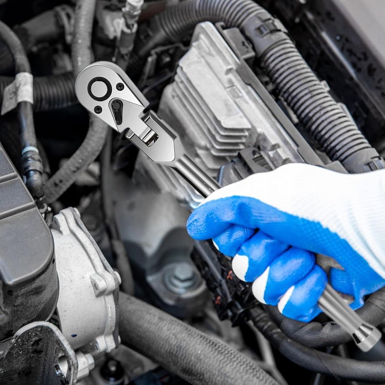 This adjustable ratchet wrench set is designed to boost productivity with flexible 180° heads that easily maneuver around obstacles. Built from durable, rust-resistant steel with a polished chrome finish, it withstands heavy use in automotive, industrial, and home repair applications. The slim 72-tooth mechanism delivers smooth performance with just a 5° swing arc, ensuring maximum torque with minimal motion. Each handle features a quick-release button for fast socket changes, providing seamless task transitions. With three drive sizes (1/4", 3/8", and 1/2"), this set covers a wide range of repair needs.