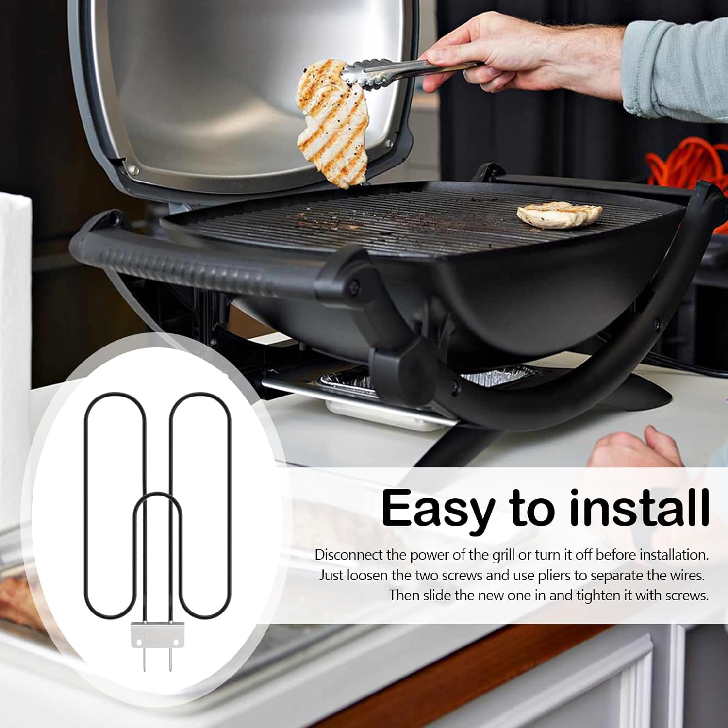 This replacement heating element is crafted from SUS840 stainless steel for maximum durability and resistance against heat, corrosion, and rust. Designed with a 2200 W output at 230 V, it delivers fast and even heating for outdoor cooking. Its simple three-step installation makes it beginner-friendly, extending the lifespan of your grill and ensuring consistent results. Perfect for barbecues, camping, or patio use, it keeps your electric BBQ running at peak performance.