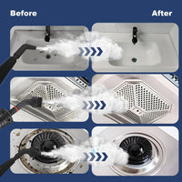This handheld steam cleaner generates 135°C (275°F) high-pressure steam to remove dirt, grease, and grime from kitchens, bathrooms, upholstery, and even cars. Using only water, it eliminates 99.9% of bacteria and germs without harsh chemicals, making it safe for homes with children and pets. Lightweight and portable, it heats up in just 3–5 minutes and features a 350 ml tank for longer cleaning sessions. The included 9-piece accessory kit makes it versatile for tackling windows, fabrics, tight corners, and stubborn grout.