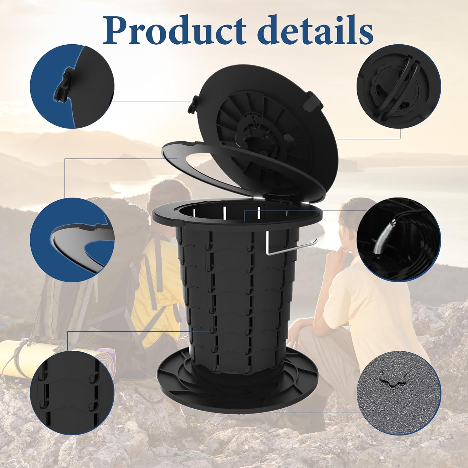 - Package contents: 1x Portable Toilet, 1x Lid, 1x Carry Bag, 7x Trash Bags, 1x User Manual