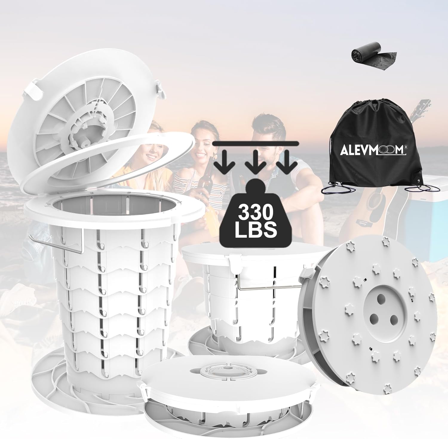 This portable toilet adjusts from 8.5cm to 50cm in height for kids and adults. The wide 38cm seat and sturdy PP build with 120 buckles support up to 400kg. Weighing only 2kg, it folds into a compact disk for transport. Includes lid, carry bag and trash bags for camping, hiking or emergencies.