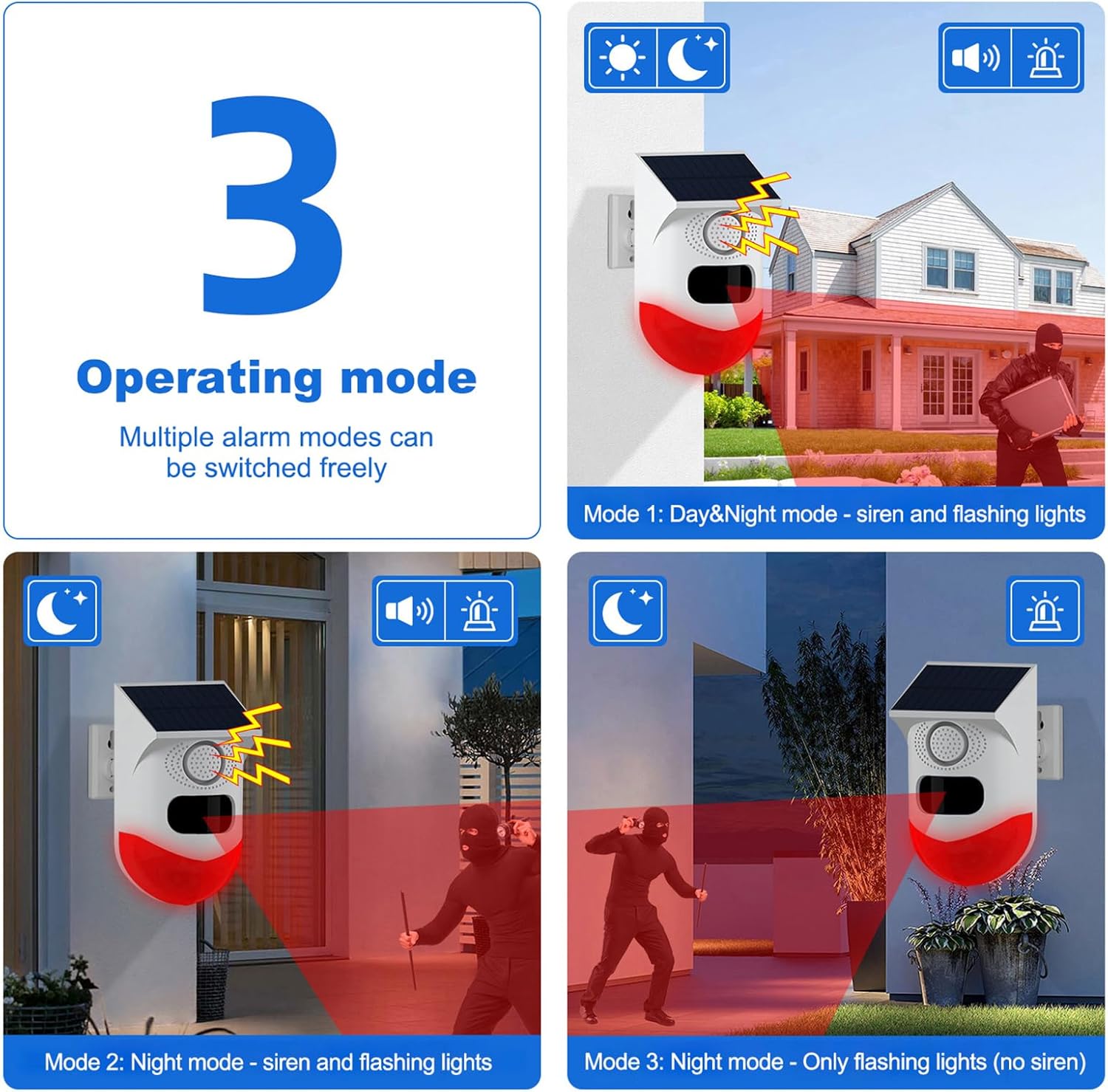 Solar Motion Sensor Alarm with 120dB Siren and LED Strobe – Feronix