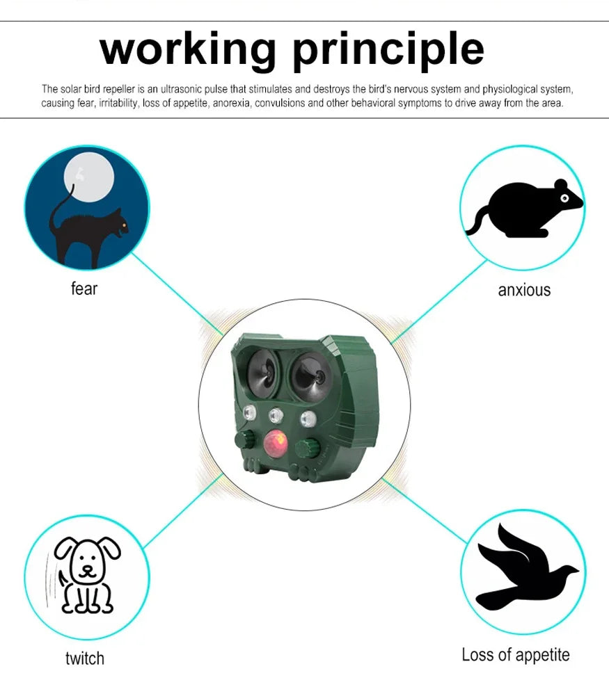 Solar Ultrasonic Animal Repeller with PIR Sensor and Flashing Light – GuardPet