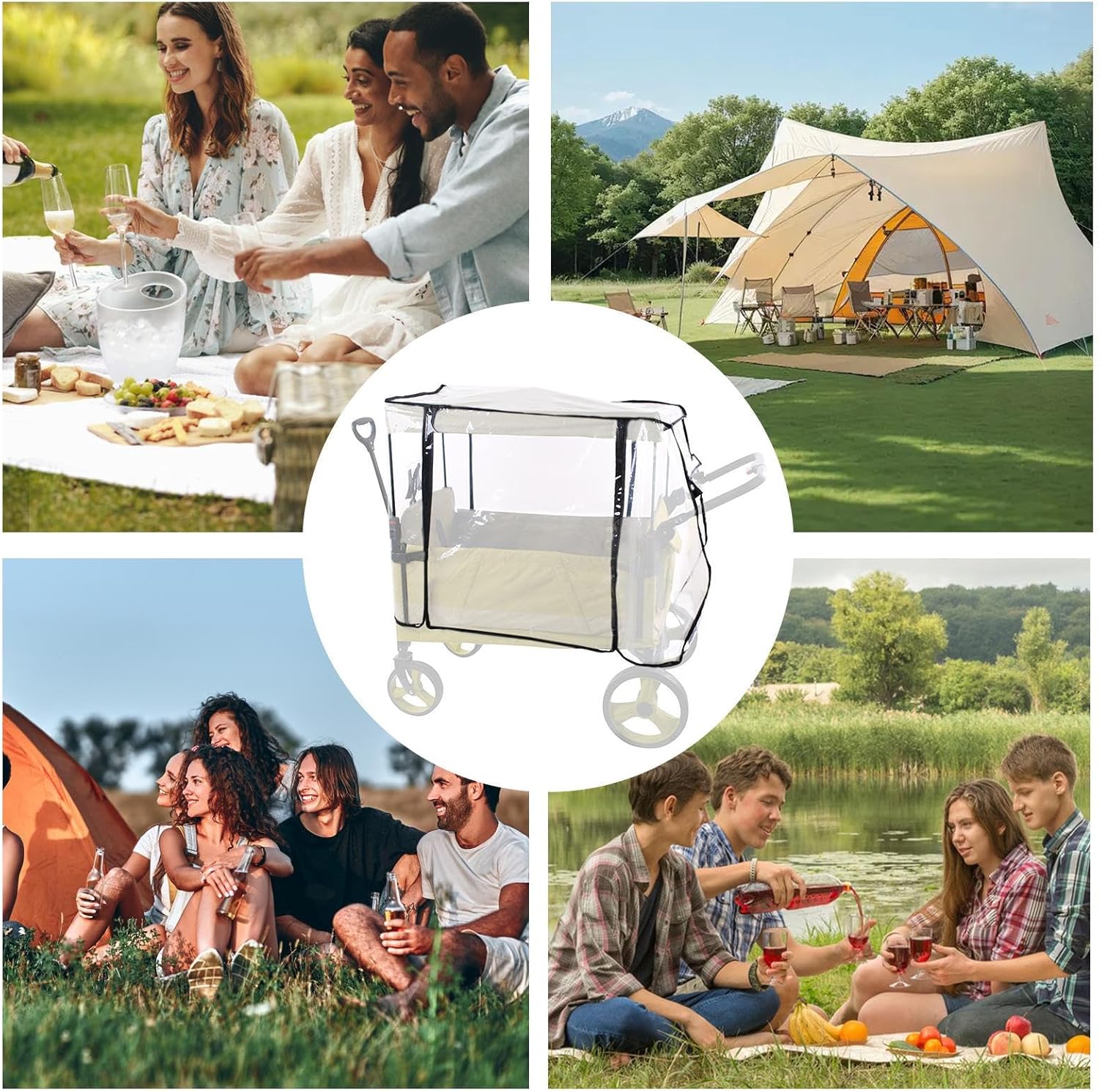 This stroller rain cover provides all-weather protection, fully covering large two-seat or four-seat strollers to keep children dry and comfortable. Featuring double removable screens and a front zipper system, it ensures smooth access and quick adjustments. Ventilation openings allow airflow, preventing stuffiness inside. Lightweight and foldable, it’s ideal for walking, fishing, camping, beach trips, or backyard use, offering dependable coverage in any outdoor setting.