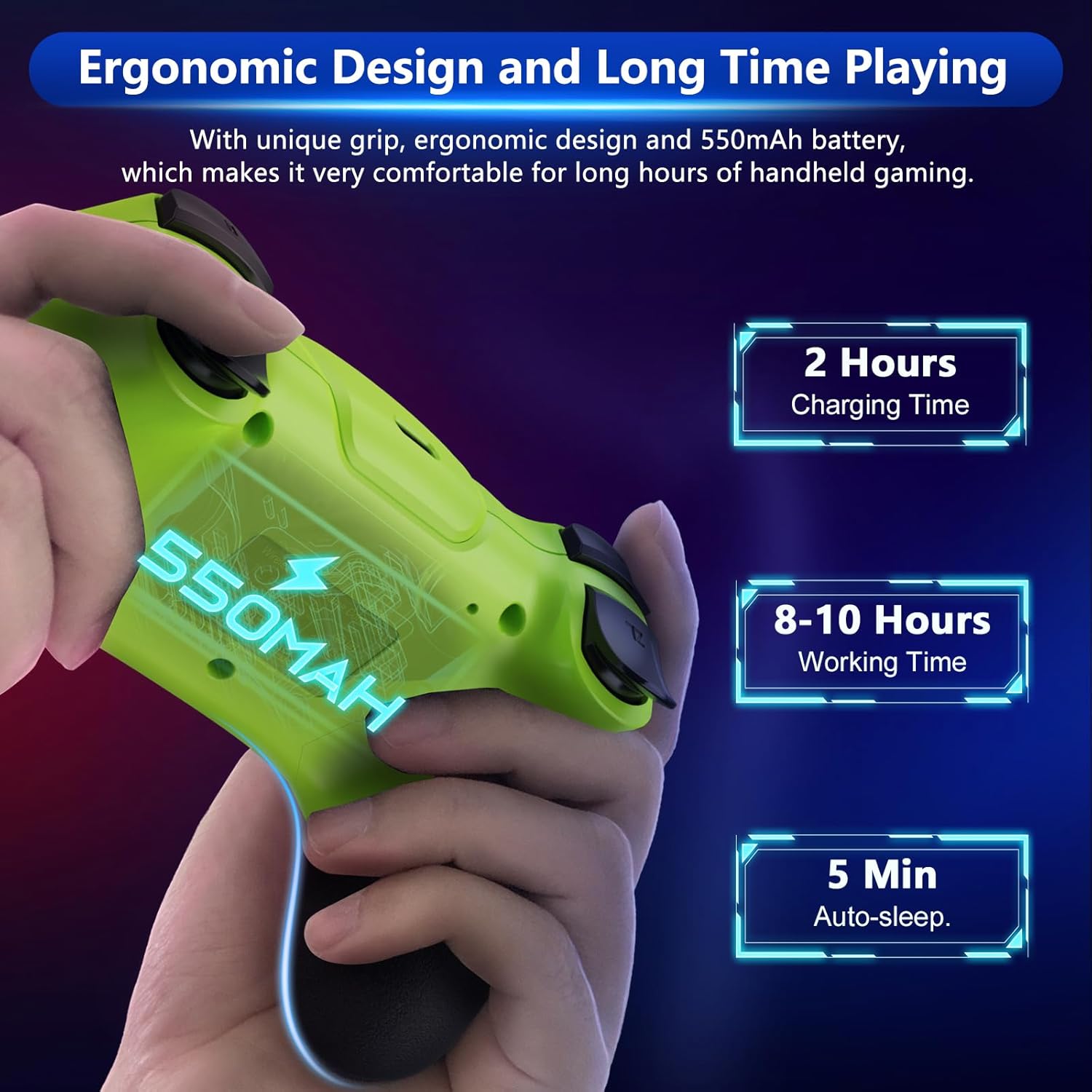 This upgraded wireless controller is compatible with Switch, Switch Lite, Switch OLED, Switch 2, and Windows PC (USB only). Featuring 360° Hall effect joysticks, dual vibration motors, motion control, and one-touch screenshot, it delivers a seamless and immersive gaming experience. With stable wireless connectivity up to 10 m and 3 adjustable turbo speeds, it’s perfect for action and arcade titles. The ergonomic, non-slip design weighs only 0.5 lb, ensuring comfort during long sessions. Powered by a 550 mAh rechargeable battery, it lasts up to 10 hours on a single charge.