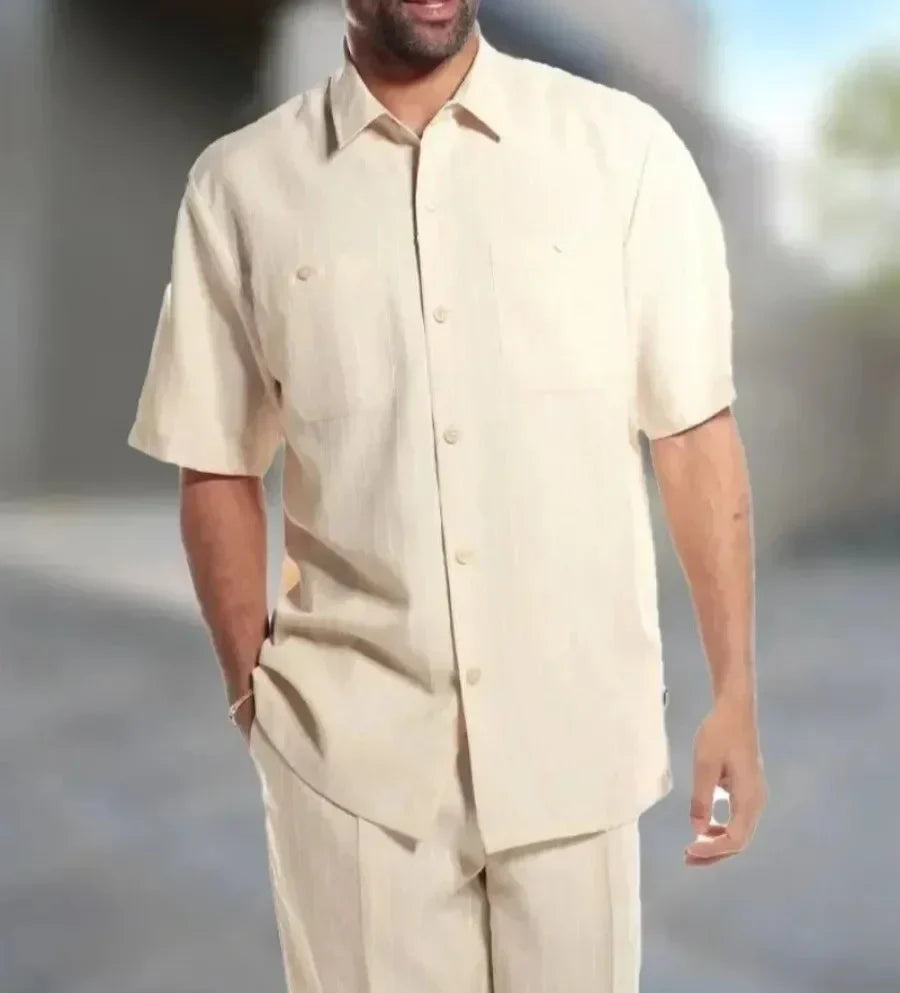 The Kenji set brings colour, expression, and comfort to your summer. Comprising a short-sleeved shirt with a lapel collar and matching trousers, it is inspired by the Harajuku streetwear of Tokyo. The striking all-over 3D print ensures a distinctive look at festivals, city trips, or in everyday life. Thanks to the lightweight, breathable fabric, you'll stay cool even in high temperatures. A must-have for those who see fashion as a form of expression.