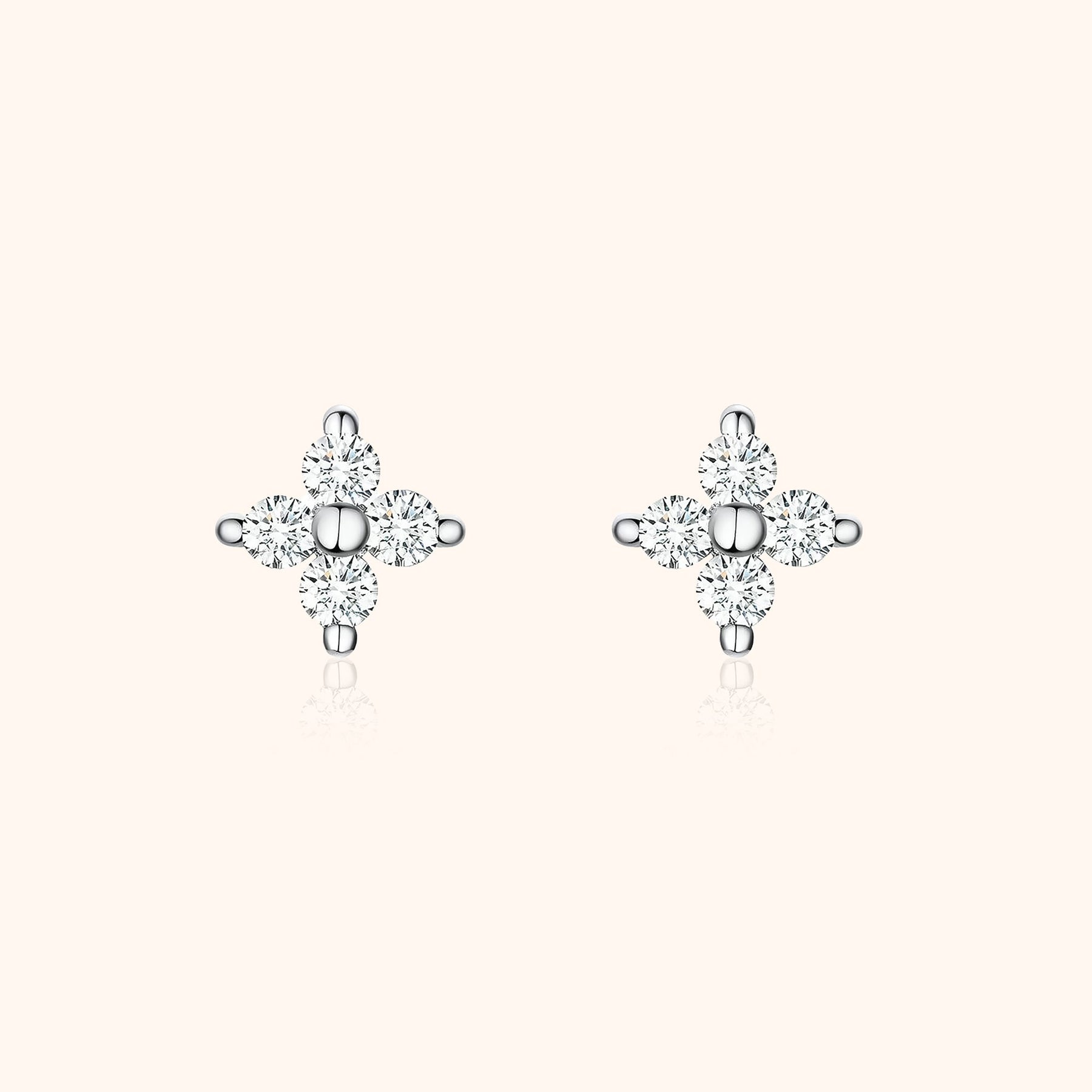 Our Elise Flower-Shaped Zirconia Earrings are elegant studs in the shape of a flower, featuring four sparkling zirconia stones. Made from sterling silver (S925), these earrings exude refined and natural elegance. Their compact size and lightweight design make them perfect for daily wear or as a subtle addition to your look.