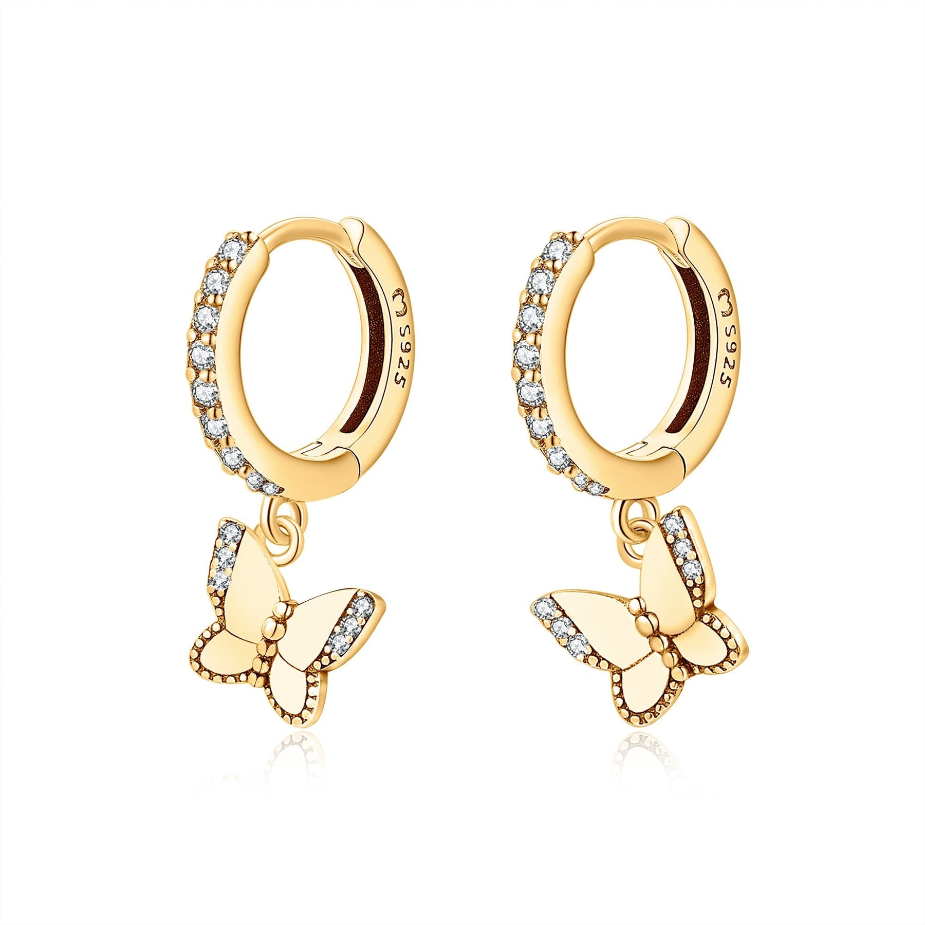 Our Lyrielle Shimmering Butterfly Earrings blend timeless elegance with a playful twist. Surrounded by sparkling cubic zirconia and adorned with delicate butterfly motifs, these earrings add a dazzling charm to any outfit. Crafted from high-quality sterling silver, they are an ideal choice for everyday wear or special occasions.