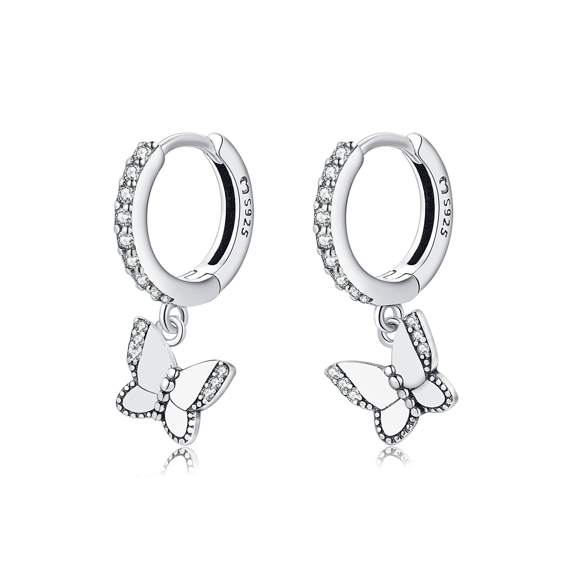 Our Lyrielle Sparkling Butterfly Earrings combine timeless beauty with a touch of playfulness. Surrounded by sparkling zirconia and adorned with delicate butterfly motifs, these earrings add a sparkling charm to any outfit. Made from high-quality sterling silver, they are a perfect choice for both everyday style and special occasions.