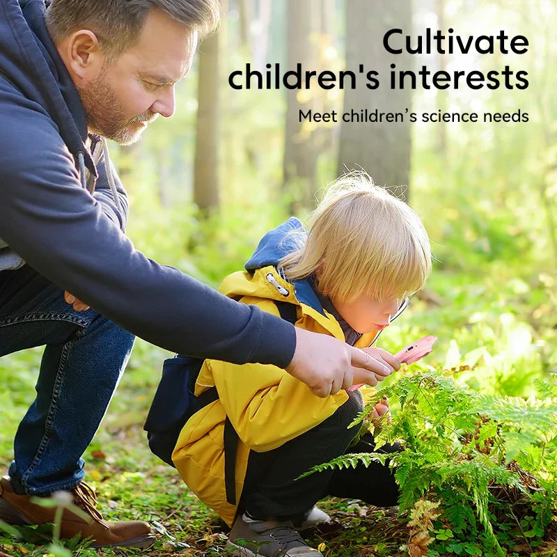 With our Zoomi, children embark on adventures in the invisible world! This user-friendly microscope makes it possible to examine everything from leaves to insects in detail – and to capture them. With 500x magnification, LED lighting, and a bright screen, Zoomi is the perfect tool to make science fun and tangible for young researchers.