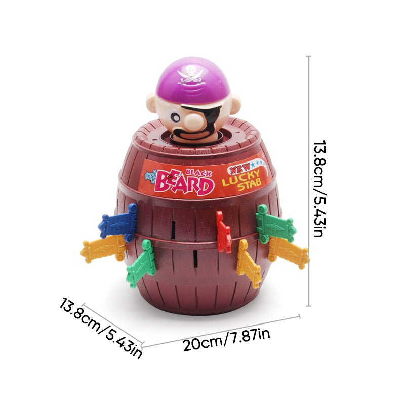 Get ready for a treasure trove of laughter and excitement with the Pirate Plunge tabletop game. This interactive pirate-themed game brings fun and competition, making it perfect for family and friend game nights. Take your turn with the swords and try to conquer the pirate's barrel without making him jump!