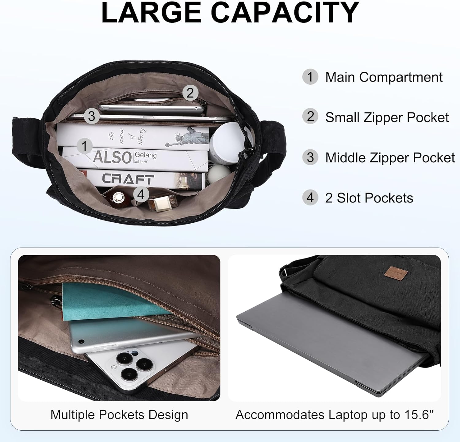 Canvas Laptop Messenger Bag with Multiple Pockets – Unisex Crossbody Tote