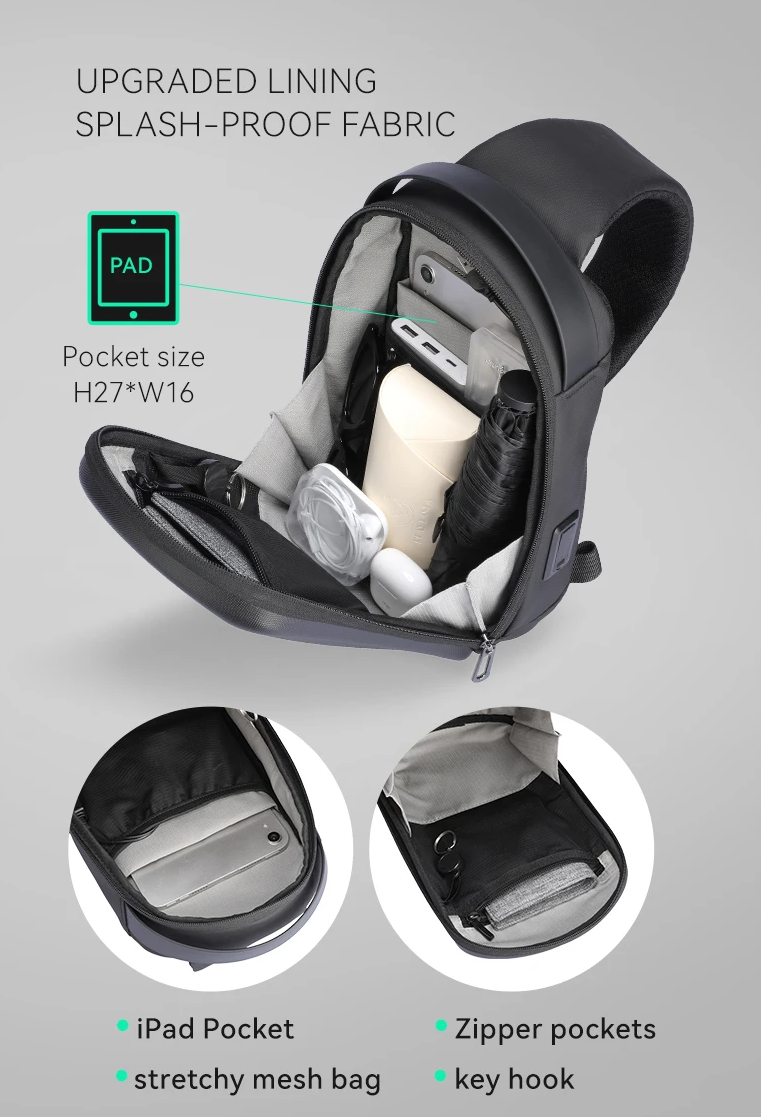 Compact waterproof crossbody bag | Hard-shell USB port | Travel daily storage