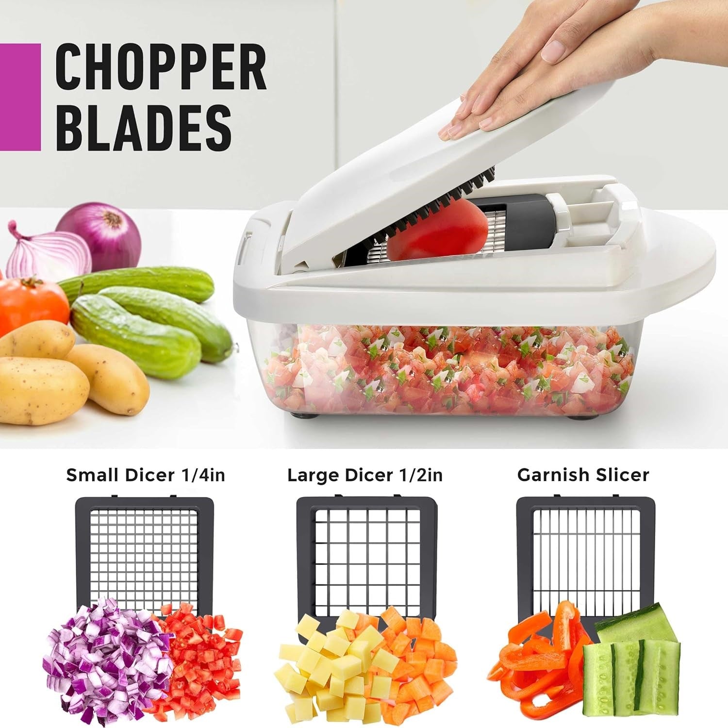 - 8 Interchangeable Blades for perfect slicing, chopping, and grating.