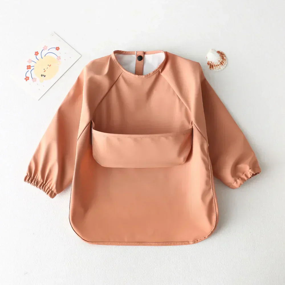 Introducing our BabyCover, a trendy bib with long sleeves that keeps your baby's clothes protected from spills and stains. Made from waterproof material and featuring an extra long fit, this bib provides full coverage for messy meals and playtime. Ideal for busy parents who want to save time and scrubbing!