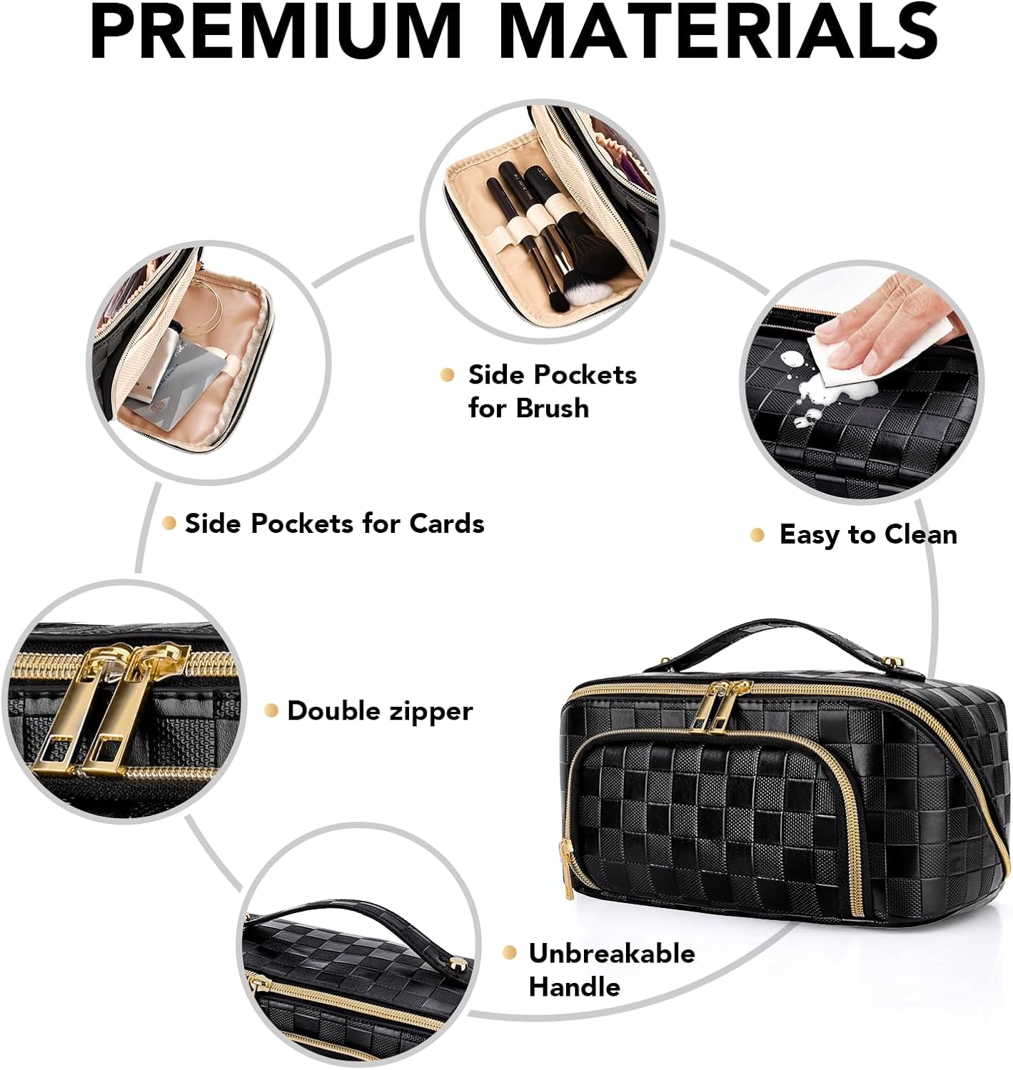 Upgrade your travel essentials with this spacious, waterproof makeup bag made of PU leather, perfect for keeping your beauty products organised on the go. The built-in divider and handy handle ensure everything stays safe and easily accessible. Whether you're packing for a short weekend away or a long holiday, this durable and stylish bag is exactly what you need.