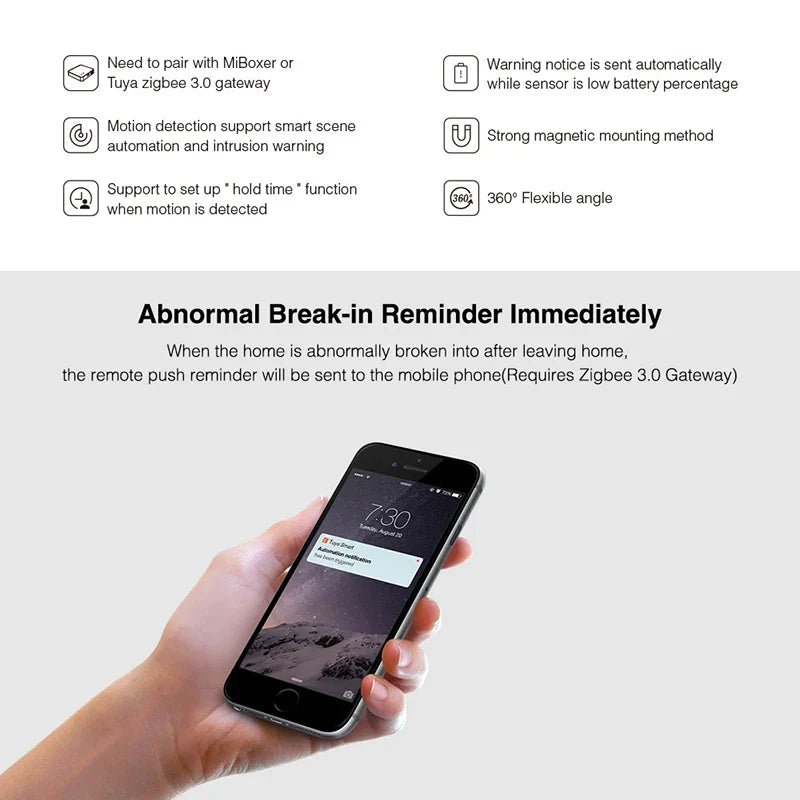 Secure your home with the SmartGuard PIR Sensor. This advanced motion sensor follows the Zigbee 3.0 protocol and offers reliable pairing and control via the Tuya app, so you can monitor your home anytime and anywhere.