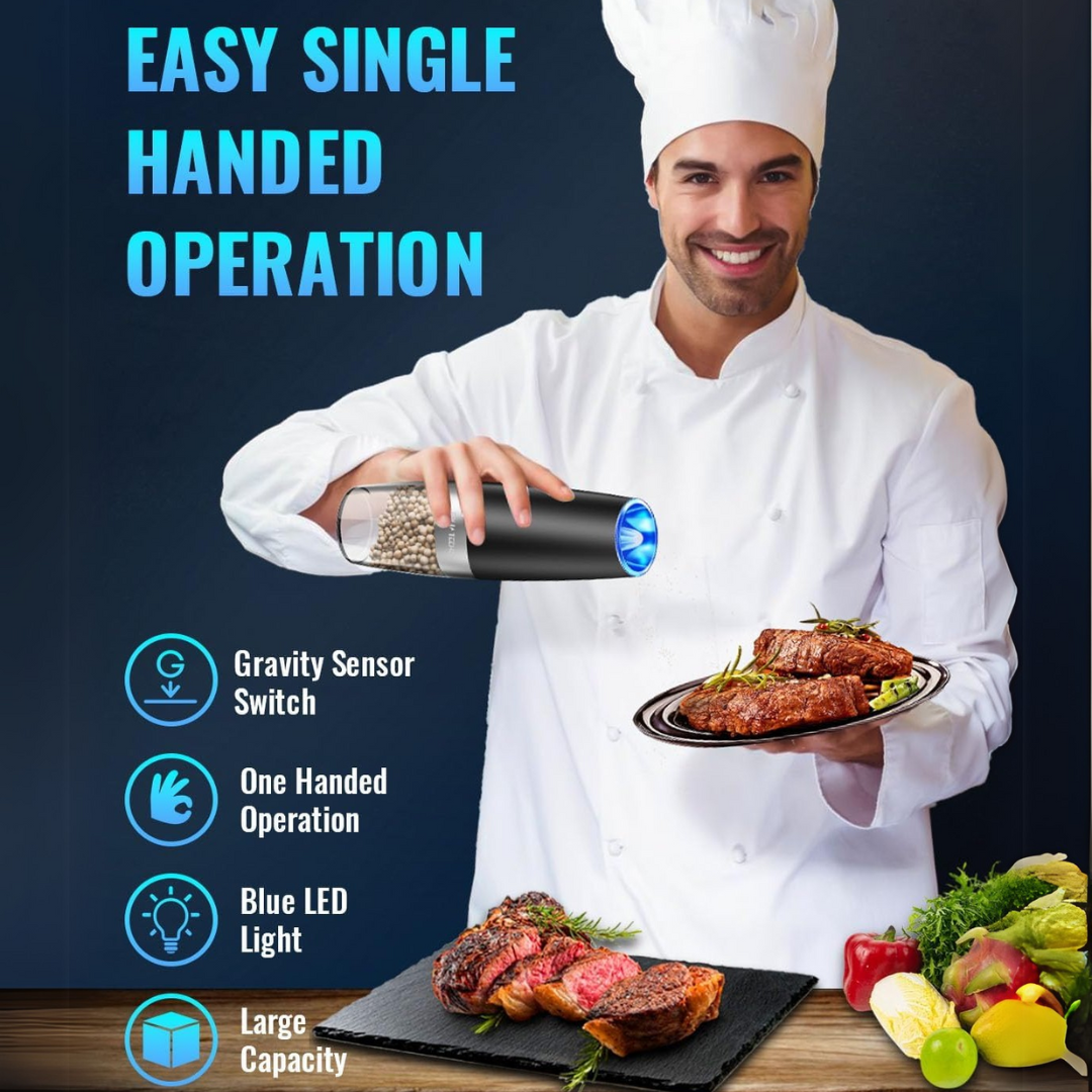- One-Handed Operation: Activated by gravity for quick, hands-free grinding. Ideal while cooking.