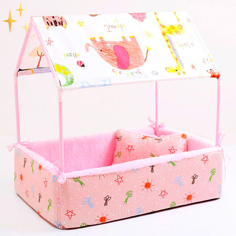Covered Fleece Sleeping Bed with Canopy and Cushion
