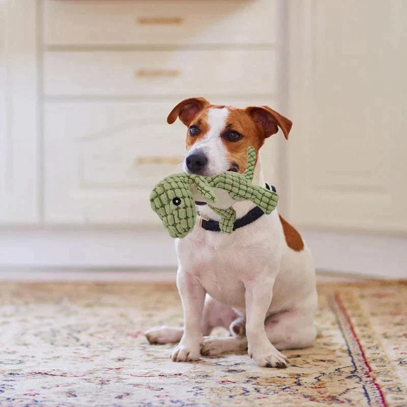 Meet the DinoPal – the ultimate cuddly toy that offers endless fun! This adorable dinosaur is not just any plush; it is specially designed to capture your pet's attention and ensures safe and joyful playtime. Made from high-quality, super-soft fabric, the DinoPal helps your pet relieve energy playfully and healthily, contributing to a reduction in aggression and stress.