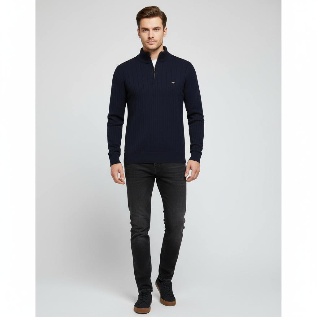 It can be challenging to find the ideal sweater that is both warm and stylish. Thanks to the high collar with a zip, this sweater offers extra protection against the cold. The high-quality material ensures a pleasant wearing experience while remaining breathable. Ideal for cosy evenings or casual gatherings, it never loses its elegant style.
