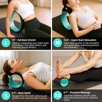This back roller set includes four wheel sizes designed to relieve pain, tension, and stress through deep tissue massage and spinal alignment. The ergonomic design fits naturally between the shoulder blades, protecting the spine while easing muscle pressure. Built with a high-density ABS core and cushioned EVA foam exterior, each wheel supports up to 240 kg without losing shape. The different wheel sizes allow for upper, mid, and lower back stretching, as well as targeted relief for shoulders and neck. Two included yoga blocks enhance stretching routines, balance, and stability. Portable and space-saving, the smaller wheels stack into the larger one for easy storage and transport.