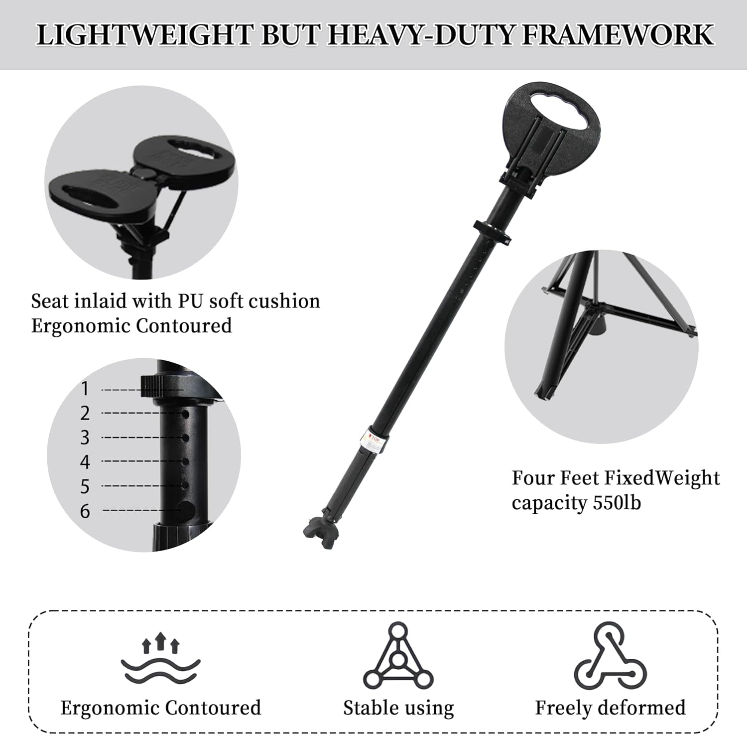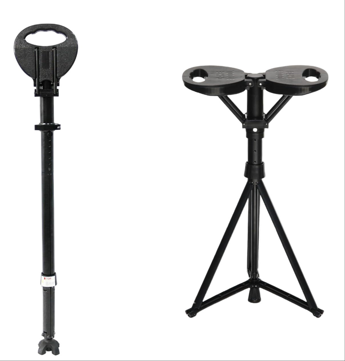 This portable walking cane doubles as a sturdy seat with a simple snap. Made from lightweight aluminium, it weighs only 0.9kg yet supports up to 250kg. The adjustable cane height (86–94cm) and seat height (48–56cm) make it suitable for adults and seniors. A triangular support base with non-slip rubber feet keeps it stable, while the carry bag makes it easy to take anywhere.